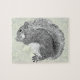Ein niedliches Eichhörnchen in einem Schwarzweiss-Skizzeart-Set gegen einen künstlerischen blassen en-grün Hintergrund basiert auf einem Minzeblatt.