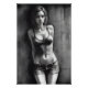 Schwarz-weiß Medienkunst, Grunge-Mädchen mit Shorts und Crop Top. Sie ist an einer Wand befestigt