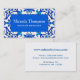 Geschäftskarte mit einem Kunst Nouveau Textilmuster, basiert auf einem Vintagen William Morris Chinoiserie-Keramik-Fliesenentwurf, in den Schatten des Kobaltblaus, des Türkises und des tiefen Siennarotes, auf einem weißen Hintergrund - digital wieder hergestellt und erhöht