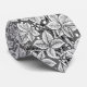 Kunst Nouveau Muster-Krawatte der ErdbeerPflanzen, mit Blätter, Blumen und Beeren, basiert auf einem Vintagen Textilentwurf Williams Morris, digital erhöht und in Schwarzweiss, mit einem dunkler Graphitgrauen /grey-Hintergrund gefärbt