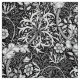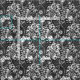 Kunst Nouveau, Fantasieunterwasserblumenmustergewebe der würdevollen Meerespflanze, des Blätter und der Blumen, basiert auf einem Vintagen Textilentwurf Williams Morris, digital erhöht und im Weiß und im Holzkohlengrau auf einem schwarzen Hintergrund gefärbt