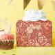 Kunst Nouveau, Fantasieunterwasserblumenmuster-Verpackungspapier der würdevollen Meerespflanze, des Blätter und der Blumen, basiert auf einem Vintagen Textilentwurf Williams Morris, digital erhöht und in der Pastell- und mittleren korallenroten Orange auf einer tiefen Koralle/einem Mandarinehintergrund gefärbt
