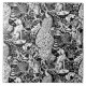 Kunst nouveau Muster, das auf einer Vintagen Tapisserie Williams Morris basierte, inspirierte das Gewebe, das eine Waldszene mit Pfaus, die Hasen und Füchse darstellt, digital übertragen in Schwarzweiss