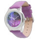 Kinderuhr aus Edelstahluhr mit lila Lederarmband