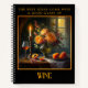 Ein Notizbuch mit einer Vintagen Stillleben Illustration eines Glases Wein mit Pfennigfuß und Pfannkuchen. Ideal für Weinverkostungen oder andere Weinthemen.
