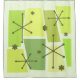 Diese moderne Vintage abstrakte Kunst aus den 1950er Jahren hat wunderschöne geometrische Rechtecke mit Linien, die sputnik Sternexplosionen machen. Die Farben sind hellgelb-grün.