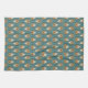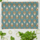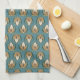 Das Teetuch umfasst Streifen von verzierten Künsten und Handwerk inspirierten Blüten. Golden zentrierte handgezeichnete Motive werden durch den dunklen Aquamarinhintergrund kontrastiert.