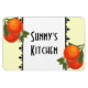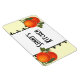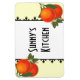 Ein Kühlschrankmagnet mit Deko-Buchstaben und Vintagen Orangen- und Orangenkunst auf cremigem Hintergrund.