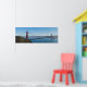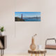 Schönes Kunstpanorama-Poster der Golden Gate Bridge mit der Innenstadt San Franciscos im Hintergrund.