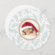 Ein handgemalt Kiefernzweig und Beerenmuster. Diese runde Weihnachtskarte ist ideal, um dem ersten Weihnachtsfest des Babys zu gedenken.