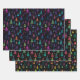 Ein Trio von auffälligen Verpackungspapieren. Diese drei einzigartigen Blätter sind mit künstlerischen, farbenfrohen, modernen Weihnachtsbäumen bedeckt, die eine Vielzahl von Farbtönen, darunter lebendige Pinks und Purples, zeigen. Machen Sie jedes Geschenk zu einem Meisterwerk und verbreiten Sie die Freude der Saison mit einem Ausbruch von zeitgenössischem Flair mit diesen 3 kunsthistorisch-bunten, modernen Weihnachtsbaumen Umschlagpapern.