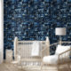 Künstlerisch marineblaue Indigo Collage Papier Tex Tapete