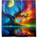 Dieser Duschvorhang hat ein künstlerisches Sonnenuntergangsbild.