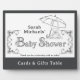 Mit diesem wunderschönen, künstlerischen Tischschild, das leicht auf Ihre Bedürfnisse zugeschnitten ist, fügen Sie Ihrer Babydusche eine Touch Eleganz hinzu. Es zeigt einen Teddybär, der unter einem Schirm mit kühlem Schriftart sitzt, um das Wort "Babydusche" in einem hübschen Rahmen zu zitieren.