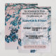 Ein atemberaubend künstlerisches und modernes Design für eine unvergessliche Feier! Diese Einladung zeigt eine surreale Naturfotografie von Baumzweigen und Blättern in einem auffallenden Blauton, der vor einem weichen pastellrosa Himmel hervorsticht. Der hohe Kontrast und die abstrakte Farbpalette schaffen einen schicken, zeitgenössischen Look, der perfekt für moderne, boho-chice oder künstlerische Hochzeiten ist.