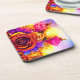 Diese Untersetzer haben eine künstlerische Blume auf ihnen.