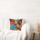 Dieses Kissen hat eine künstlerische Blume darauf.