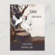 Save the Date Postkarte mit einem zeichn japanischer Krane am Waldrand. Japanische Krane sind ein Symbol für Langlebigkeit, Glück und Treue und somit perfekt für eine Hochzeit!
