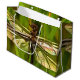 Künstlerische Libelle in Braun und Gelb auf Grün Große Geschenktüte