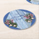 Künstlerische, rosa Blume auf blauem Holzstoff-Tex Runder Pappuntersetzer
