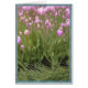 Foto aus rosa Tulpen und Gras. 5"x7" (Portrait). Digital verändert. Blauer Rand.