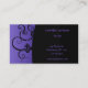Stilvolle Geschäftskarte getan in Schwarzem und in Lila. Die links Seite ist mit trendy schwarzen Locken lila. Die rechte Seite ist mit lila Text schwarz. Groß für irgendein Geschäft oder Beruf.