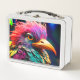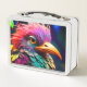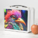 Diese Lunchbox hat einen künstlerischen Vogel drauf/