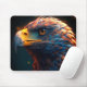 Dieses Mousepad hat einen künstlerischen Vogel darauf.