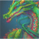 Dieser Aufkleber hat einen künstlerischen Drachen darauf.
