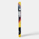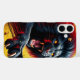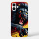 Dieser Telefonkasten hat einen künstlerischen Löwen darauf.