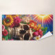 Dieses Badetuch hat einen künstlerischen Schädel darauf.