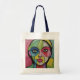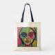 Diese kühne, skurrile Tasche ist das perfekte Accessoire, um Ihre Kreativität und Ihren einzigartigen persönlichen Stil auszudrücken. Das moderne, abstrakte Gesichtsdesign in einem farbenprächtigen Regenbogen macht aus jedem Blickwinkel eine bemerkenswerte Aussage. Aus robuster, langlebiger Leinwand gefertigt, ist es so gebaut, dass es dem täglichen Gebrauch standhält und gleichzeitig Ihre Sachen sicher und organisiert behalte. Die geräumige Inneneinrichtung und die verstellbaren Griffe verleihen dieser Tasche eine moderne und funktionale Atmosphäre.