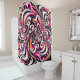 Dieser Duschvorhang hat ein künstlerisches Design.
