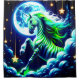 Dieser mystische Duschvorhang hat eine künstlerische, grün gestreifte Einhornszene.