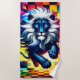 Dieses Strandtuch hat einen künstlerischen Löwen, der darauf abgebildet ist.