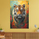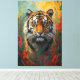 Ein kühner und faszinierender Leinwand mit einem künstlerischen Tigerportrait in einem lebendigen Ölgemälde. Mit seinem durchdringenden Blick und seiner starken Präsenz verleiht dieses Kunstwerk jedem Raum Kraft, Eleganz und wilde Schönheit. Eine Schöpfung signiert ZR21Designs.