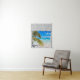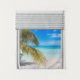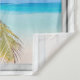 Strand und blaues tropisches Meer, Fake Fensterfront Szene, für ein fensterloses Bad oder Bürowand. Spaß, realistische optische Täuschung landschaftliche Tapisserie für ein Büro oder eine Studiowand.