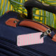 Kunststreifen, rot und türkis, Monogramm Gepäckanhänger