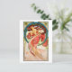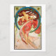 1898 Art Nouveau Lithograph Poster von tschechischem Künstler Alphonse Mucha (1860-1939). Schöne Frau in einem roten Kleid, Blume in ihrem langen, fließenden, leuchtend roten Haar, ihr Rücken gewölbt, Blick über bärtige Schultern, stehend auf ihren Zehen.