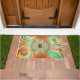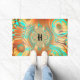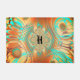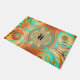 Ein sehr abstraktes Muster Türmatte in warmen Brauntönen, Kupfer und Bronze mit Aqua als Akzent.