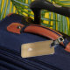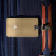 Modernes, exklusives Gepäckanhänger auf beige-gelb-glänzender metallischer Textur mit geometrisch rautenförmigen Monogramm. Personalisieren Sie es mit Ihrem Namen, Monogramm und Details auf beiden Seiten!
