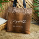Diese elegante moderne Brautjungfer-Tasche hat einen kupferfarbenen falschen Glitter-Rahmen. Fügen Sie ihren Namen in weißer Handschrift und das Wort "Brautjungfer" oder einen anderen Titel in serifenloser Schrift auf einem kupferfarbenen falschen gebürsteten Metallhintergrund hinzu.