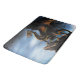 Ein majestätischer Drache mit Kupfer-, Gold- und schwarzen Skalen auf einer Klippenkante mit blauem Himmel dahinter.