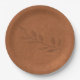 Set von acht 9"-Papier-Tellern mit einem Bild aus zerkleinertem Kupfer und scheinbar geprägten Blätter aus zerkleinertem Kupfer. Siehe dazu passende Süßkarton, Espressotasse, Tasse, quadratische Keramik, quadratische Trivette und viereckiger Untersetzer aus Kunststoff. Sehen Sie sich die gesamte Sammlung This & That Plate im ZUHAUSE-Bereich an.