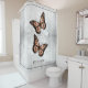 Fügen Sie Ihrem Bad eine einzigartige Touch mit einem Kupfer-Schmetterling-Blumenduschvorhang hinzu. Im Duschvorhang finden Sie ein Paar lebendige Schmetterlinge, die sich auf einer weißen, blumigen Weinrebe mit hellgrauem Grunge-Hintergrund ausruhen. Auch zusätzliche Geschenkartikel sind in diesem Design erhältlich.