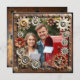 Kupfer, Gold und Silber Steampunk Hochzeit RSVP Karten. Steampunk themed mit Gold, Silber und Kupfer Metallgetrieben und Herzen. Laden Sie Ihr Lieblingsbild im personalisierenden Bereich hoch und bearbeiten Sie den Text auf der Rückseite, um Ihre Auswahl an Hochzeitsmahlzeiten hinzuzufügen.