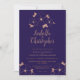 Hochwertiges und modernes, kupfer metallisches Blumendesign auf Mitternacht blauen Hintergrund Hochzeitseinladung.
