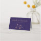 Ausgeklügeltes und modernes Kupfermetall-Blumendesign auf der Platzkarte des Hochzeitstages in Mitternacht.