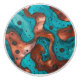 Lebhafte abstrakte Komposition mit einer Mischung aus reichen Kupfer-Patina-Tönen und wirbelnden türkisfarbenen Mustern.