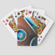 Abstrakte Digitalkunst auf diesen Spielkarten suggeriert eine 3D-glänzende Oberfläche aus Kupfer mit Löchern, die in ein azurblaues Flugzeug der Existenz gebohrt werden... Oder so etwas. Lass dir, du schläfst..